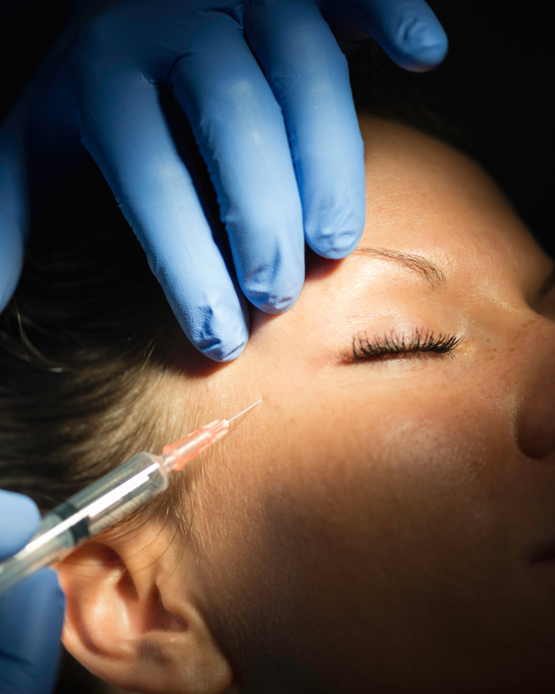 Injeção precisa da toxina botulínica nos pontos estratégicos da face.